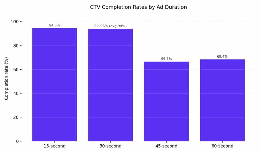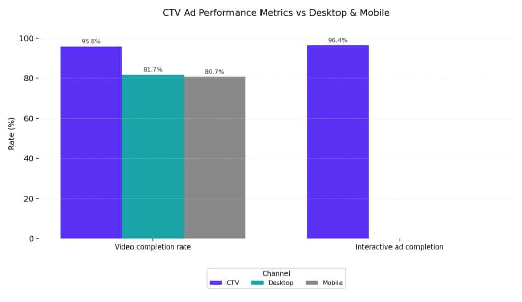 CTV advertising delivers significantly stronger engagement and completion rates compared to other digital channels.