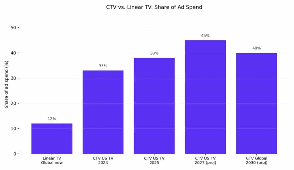 | CTV projected share by 2030 | >40% of global ad spend | |