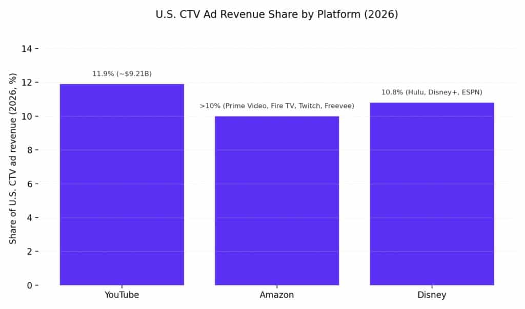 | Platform | Share of U.S. CTV Ad Revenue (2026) | Key Properties |