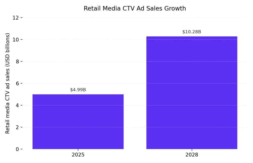 | Retail Media on CTV (U.S.) | $4.99B | $10.28B (2028) | ~27% | 2025–2028 |