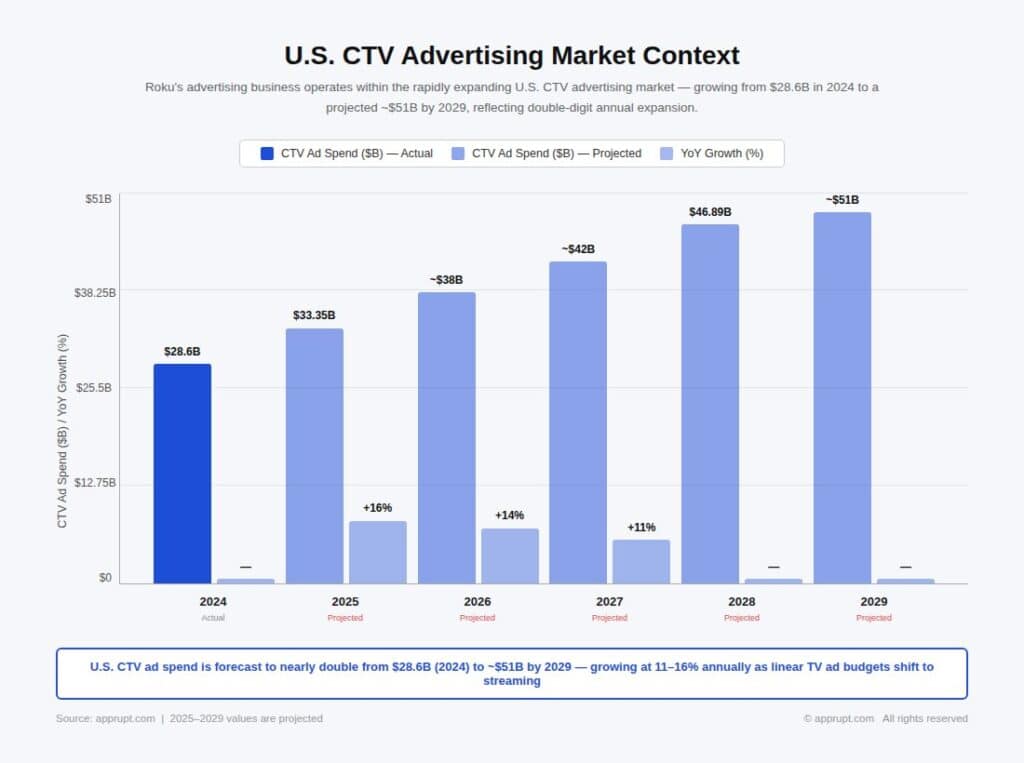 Roku’s advertising business operates within the rapidly expanding U.S. CTV advertising market: