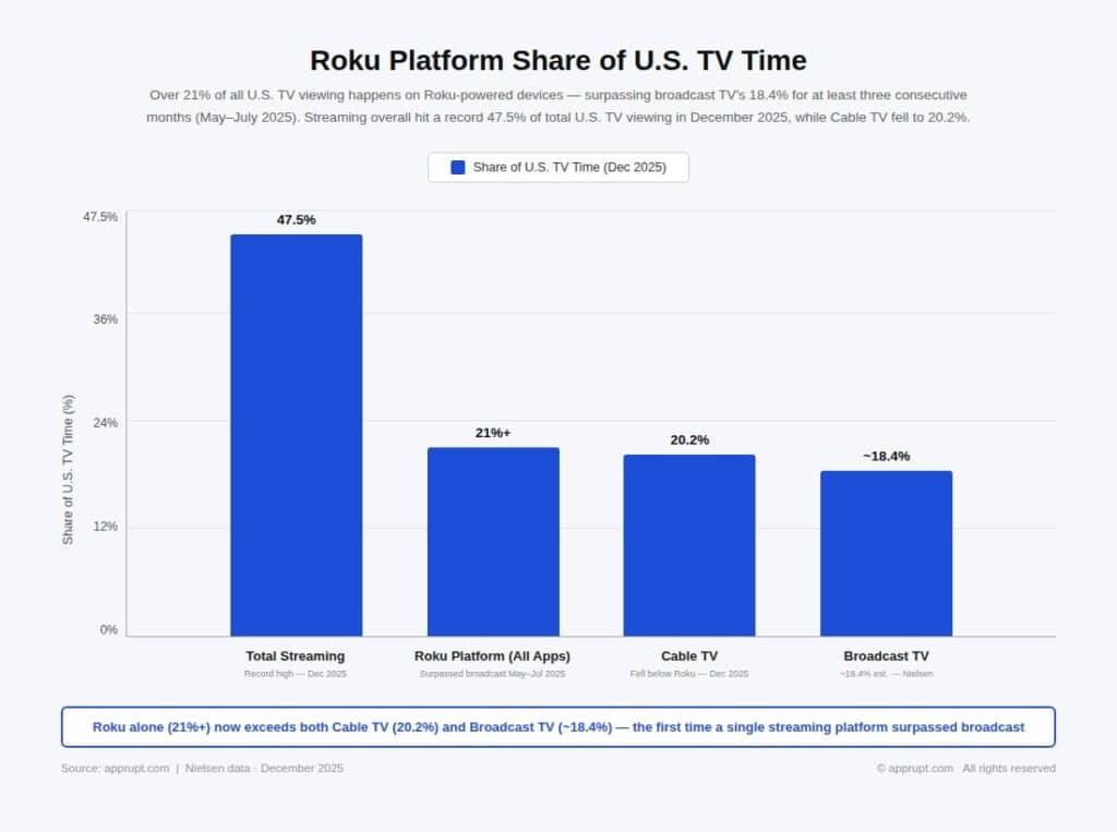 | Roku platform (all apps) | 21%+ |