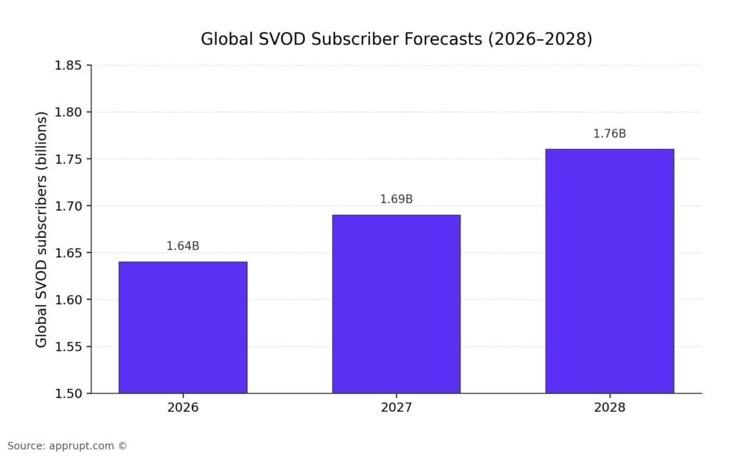 | Global SVOD subs forecast (2028) | 1.76 billion | Projected |
