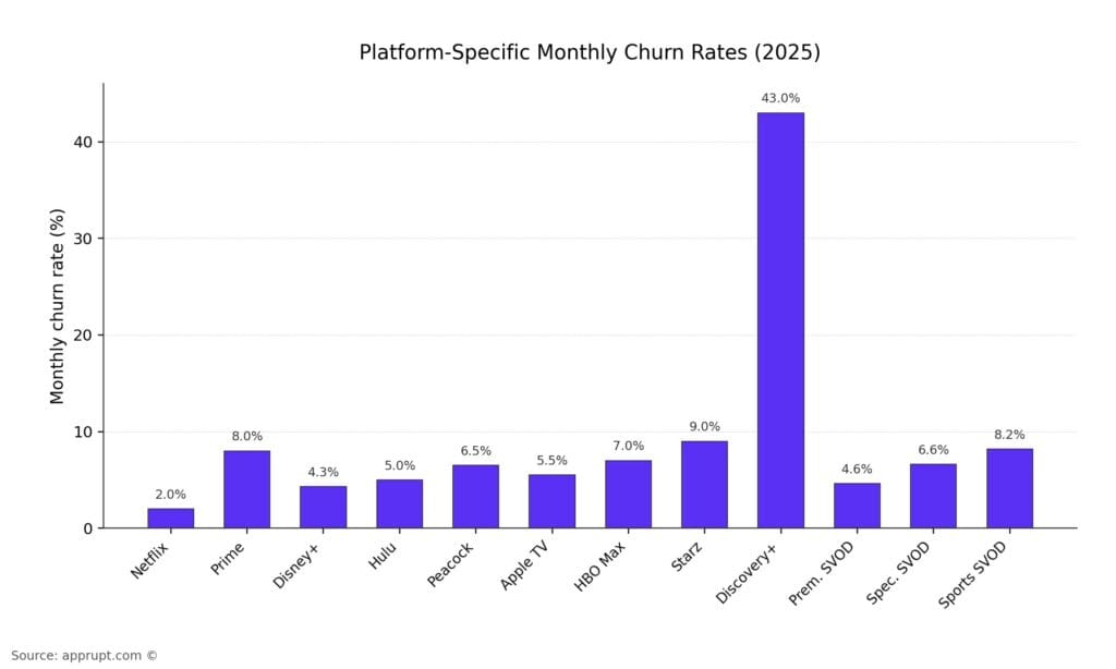 | Discovery+ | ~43% | Highest churn among tracked major providers |