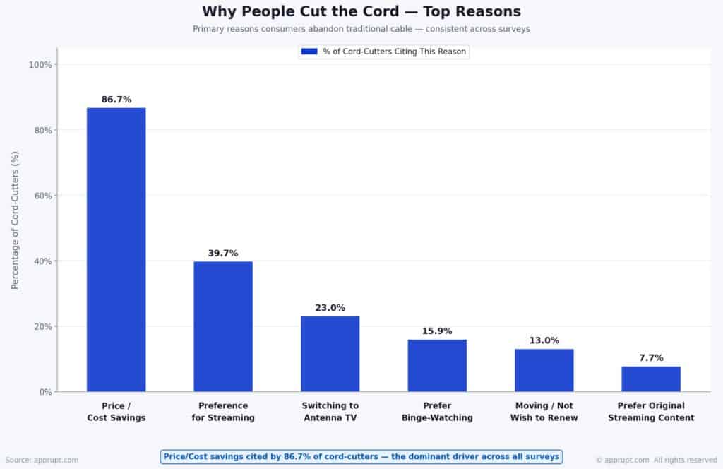 The primary reasons consumers abandon traditional cable are consistent across surveys: